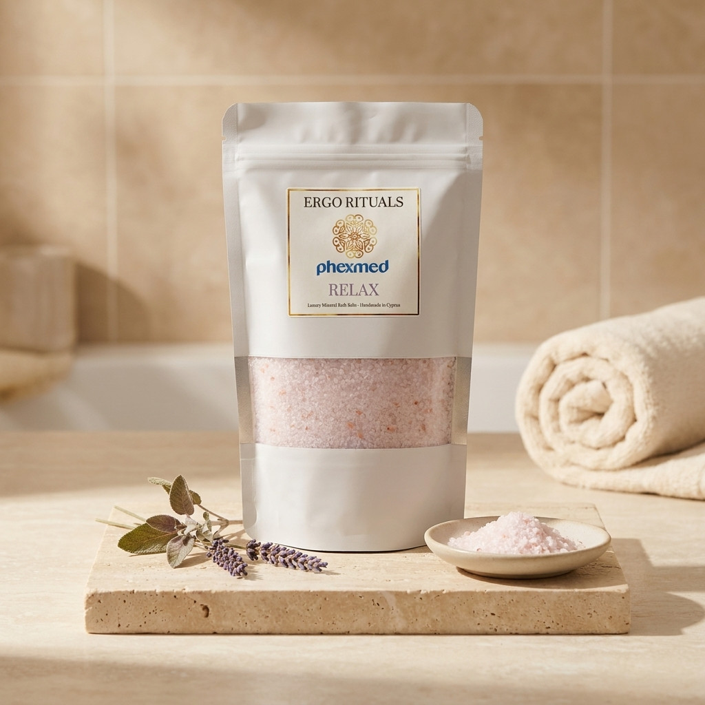 Relax Bath Salts 400g is a calming mineral bath blend made with Epsom salt, Sea salt, Dead Sea salt, and Himalayan salt, enriched with jojoba oil and pure lavender and clary sage essential oils for a soothing, spa-like bathing experience.